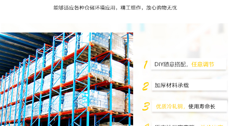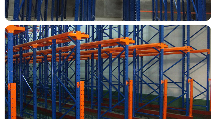 Through type shelves, also known as corridor type shelves or entry type shelves. Through type shelves can be used for forklifts (or unmanned carriers with forks) to enter and store goods, suitable for storing goods of small varieties and large quantities. A through type shelf, except for the storage space near the aisle, is usually recommended to have a depth of no more than 7 storage spaces for single side pickup, as forklifts need to enter and store goods inside the shelf.