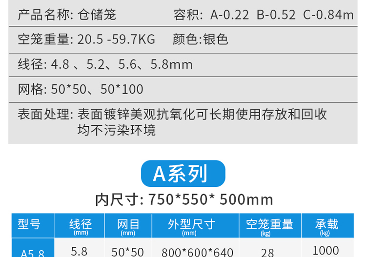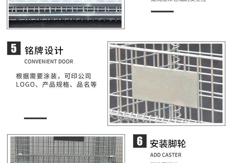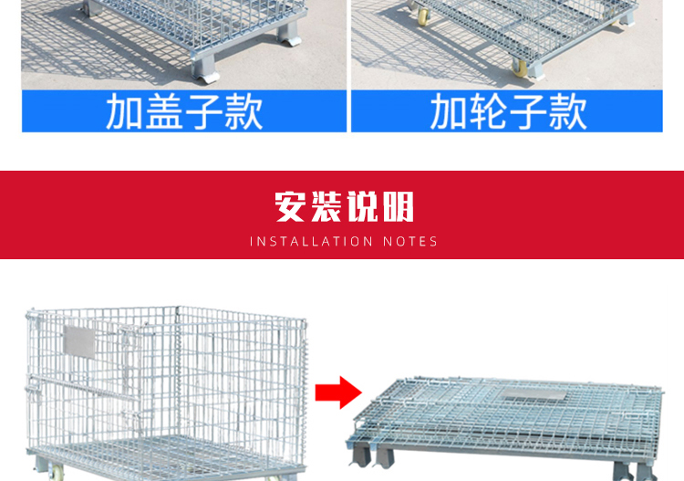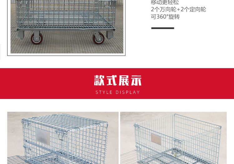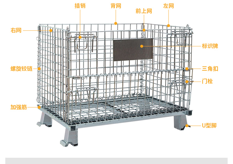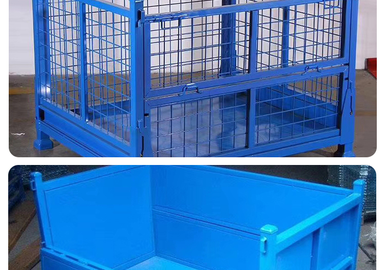 Storage cages have the advantages of fixed storage capacity, neat stacking, clear storage, and easy inventory counting, while also improving the effective utilization of storage space. In addition, the product is sturdy, durable, easy to transport, and can be reused, effectively reducing the labor consumption and packaging costs of warehousing enterprises. This product can not only be used in factory production workshops, but also in supermarkets for display, promotion, and warehousing. Improved storage cages can be placed on shelves, assembly lines, or stacked: storage cages with wheels can be conveniently and quickly turnover in the workshop, while storage cages with PVC or iron plates can prevent small items from leaking.