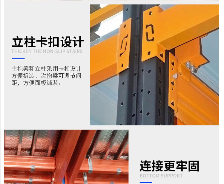 The attic style shelving system usually uses medium or heavy shelving as the main support and floor panels (the choice of shelving is determined based on the total load weight of the shelving unit). The floor panels are usually cold-rolled steel floors, patterned steel floors, or steel grating floors. The attic style shelving system is the construction of an intermediate attic on an existing workplace or shelving to increase storage space. It can be used as a second or third floor attic and is suitable for storing light foam and small and medium-sized goods. It is suitable for multi variety large batch or multi variety small batch goods, and manual storage and retrieval of goods. Goods are usually transported to the second or third floor by forklifts, hydraulic lifting platforms, or cargo elevators, and then transported to a certain location by light trucks or hydraulic pallet trucks.