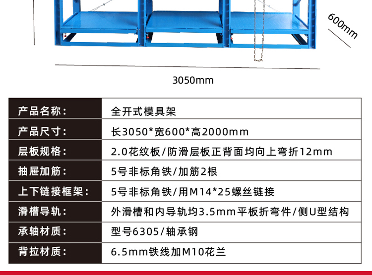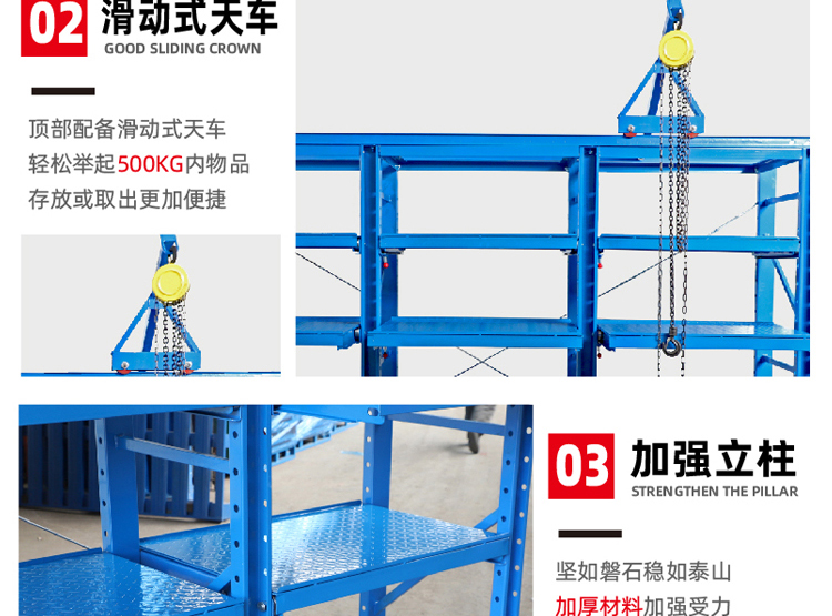 Drawer type shelf, three column injection molding workshop mold storage rack