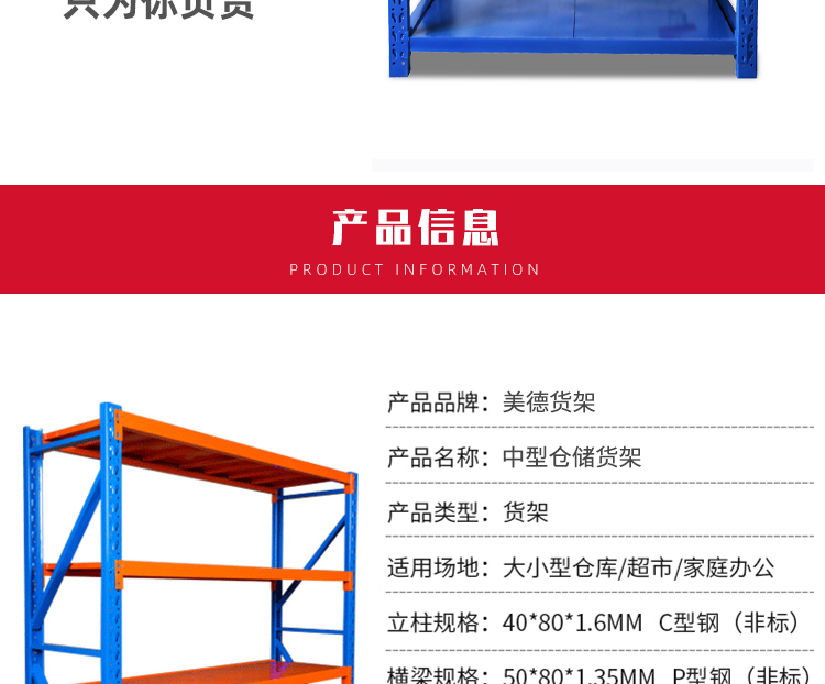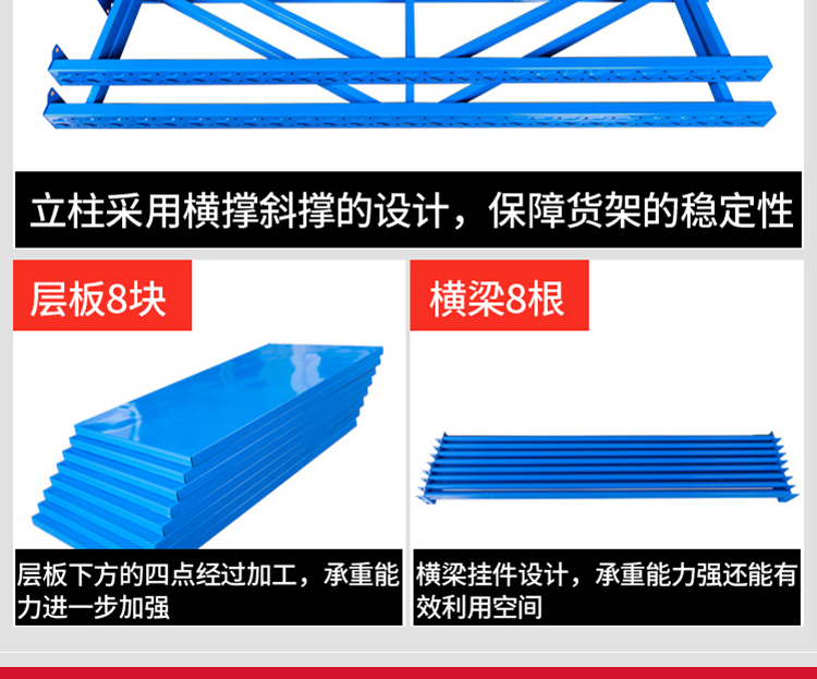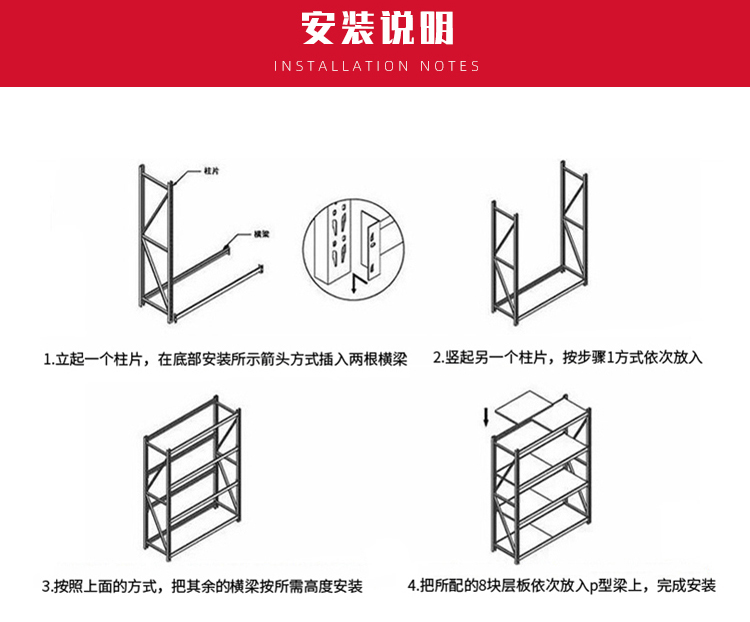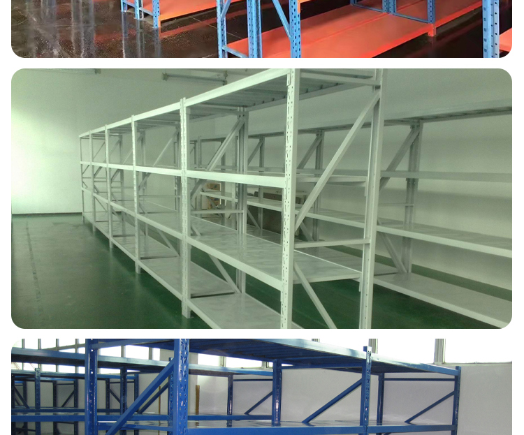 The medium-sized storage shelves adopt a column plate and crossbeam hanging structure, which is easy to disassemble and assemble. The layer plate is 50mm adjustable, and the average load capacity of the lower layer can reach 200-600kg (the load capacity of the shelves is mostly calculated on a layer by layer basis). The shelf span can reach 2400mm, and the layer board can be made of steel plate or wood layer board (plywood). Shelf type medium-sized shelves are distinguished and named based on their load-bearing capacity. According to this classification principle, the load-bearing capacity of shelf type medium-sized shelves in all storage shelves is between shelf type light shelves and shelf type heavy shelves.