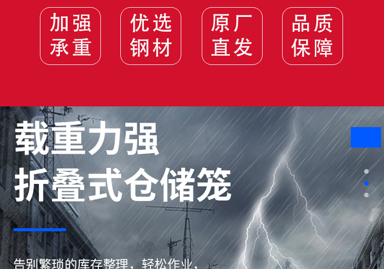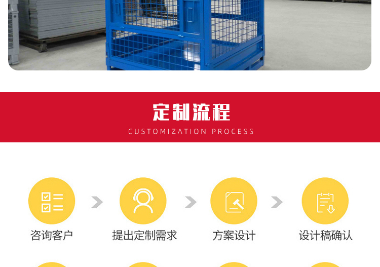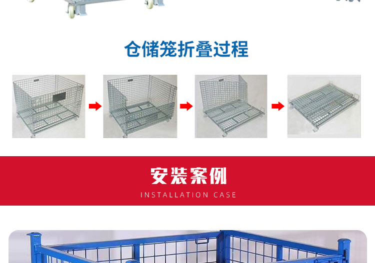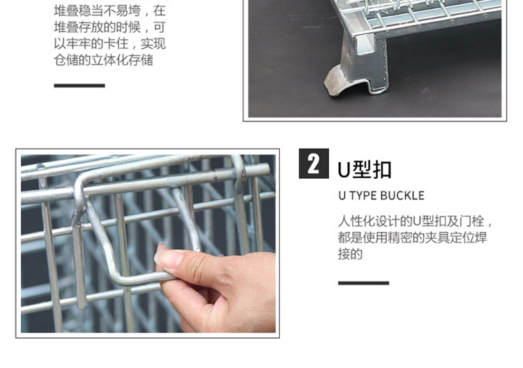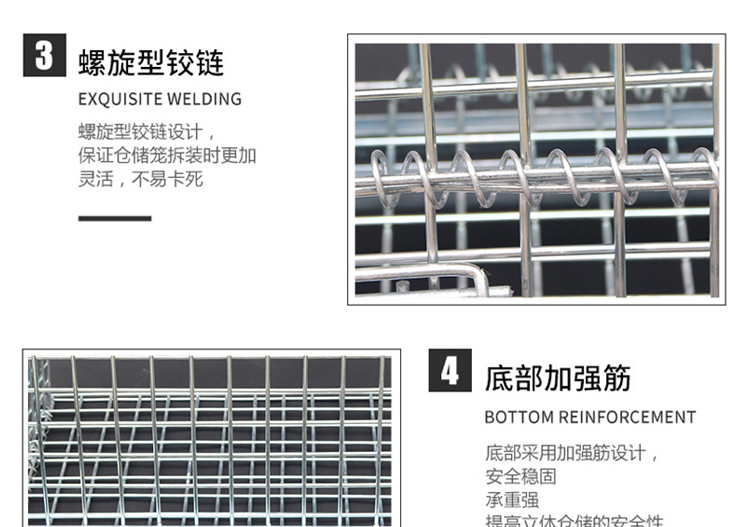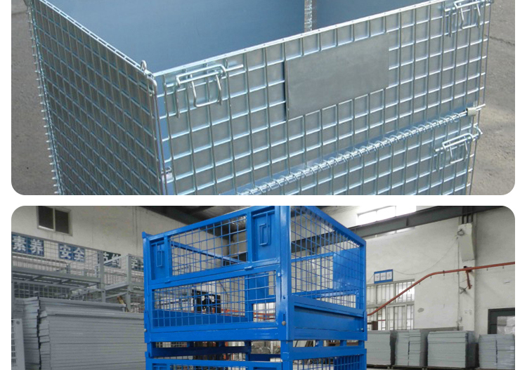 Storage cages have the advantages of fixed storage capacity, neat stacking, clear storage, and easy inventory counting, while also improving the effective utilization of storage space. In addition, the product is sturdy, durable, easy to transport, and can be reused, effectively reducing the labor consumption and packaging costs of warehousing enterprises. This product can not only be used in factory production workshops, but also in supermarkets for display, promotion, and warehousing. Improved storage cages can be placed on shelves, assembly lines, or stacked: storage cages with wheels can be conveniently and quickly turnover in the workshop, while storage cages with PVC or iron plates can prevent small items from leaking.