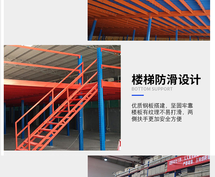 The attic style shelving system usually uses medium or heavy shelving as the main support and floor panels (the choice of shelving is determined based on the total load weight of the shelving unit). The floor panels are usually cold-rolled steel floors, patterned steel floors, or steel grating floors. The attic style shelving system is the construction of an intermediate attic on an existing workplace or shelving to increase storage space. It can be used as a second or third floor attic and is suitable for storing light foam and small and medium-sized goods. It is suitable for multi variety large batch or multi variety small batch goods, and manual storage and retrieval of goods. Goods are usually transported to the second or third floor by forklifts, hydraulic lifting platforms, or cargo elevators, and then transported to a certain location by light trucks or hydraulic pallet trucks.